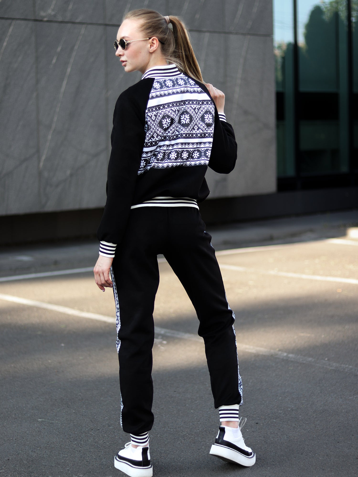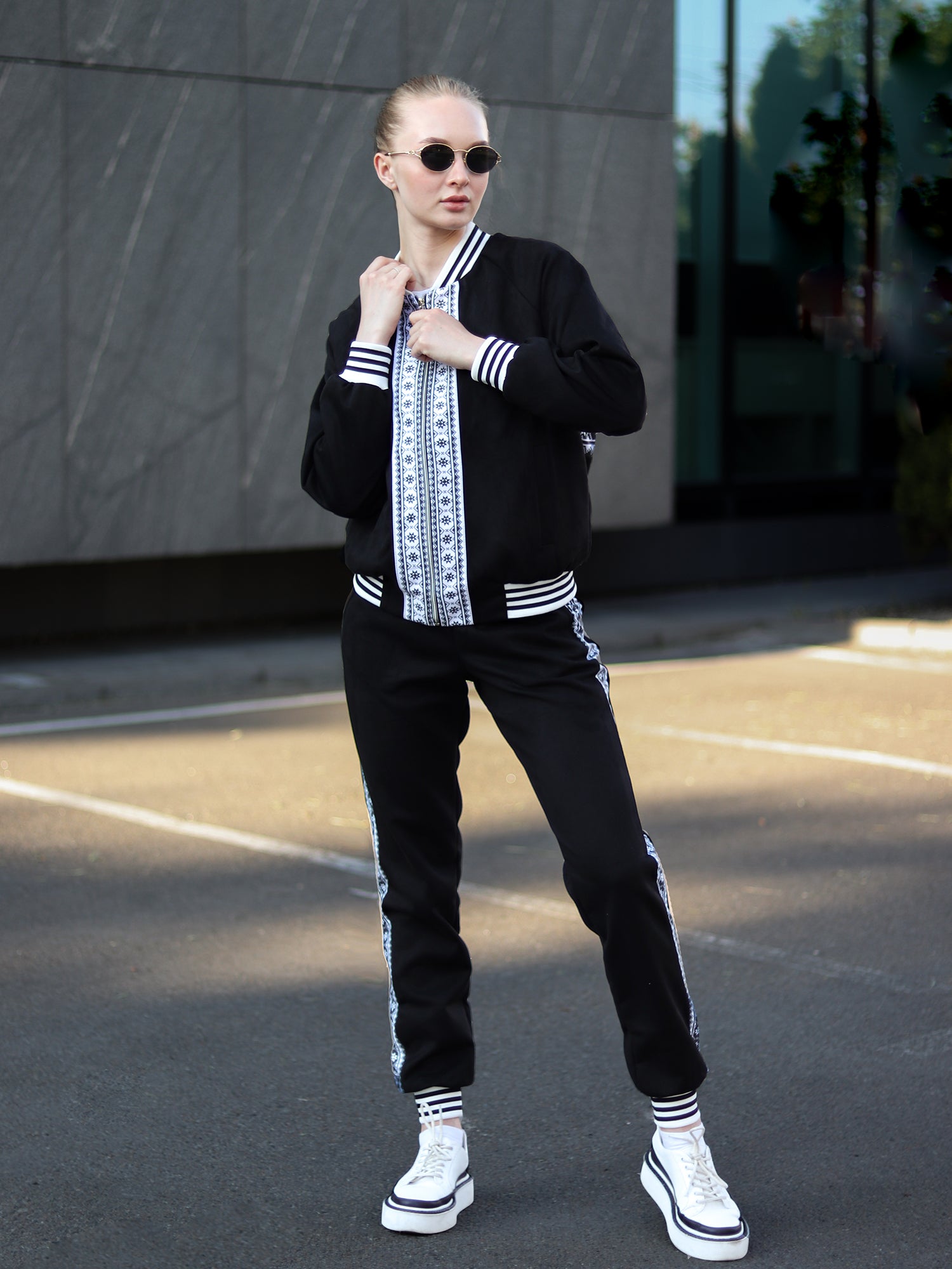 This suit is a unique combination of the comfort of sportswear and the sophistication of traditional Ukrainian ornaments. Such a set is perfect for both everyday life and special events, because this special print will definitely attract attention to you.