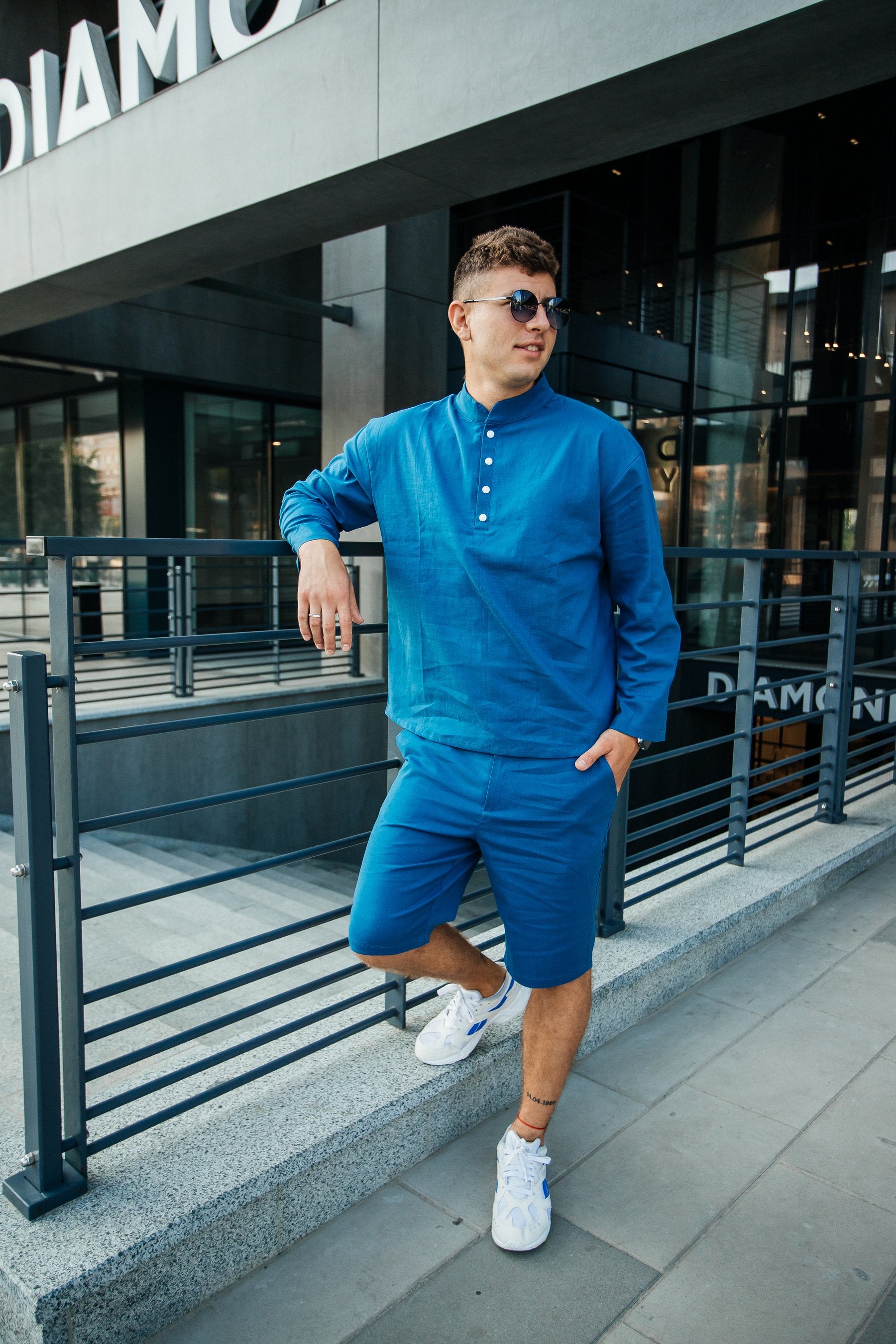Light summer polo with long sleeves and shorts set. Made from 100% linen, it is ideal for hot summer weather. The suit is lightweight, breathable and protects well from the sun.