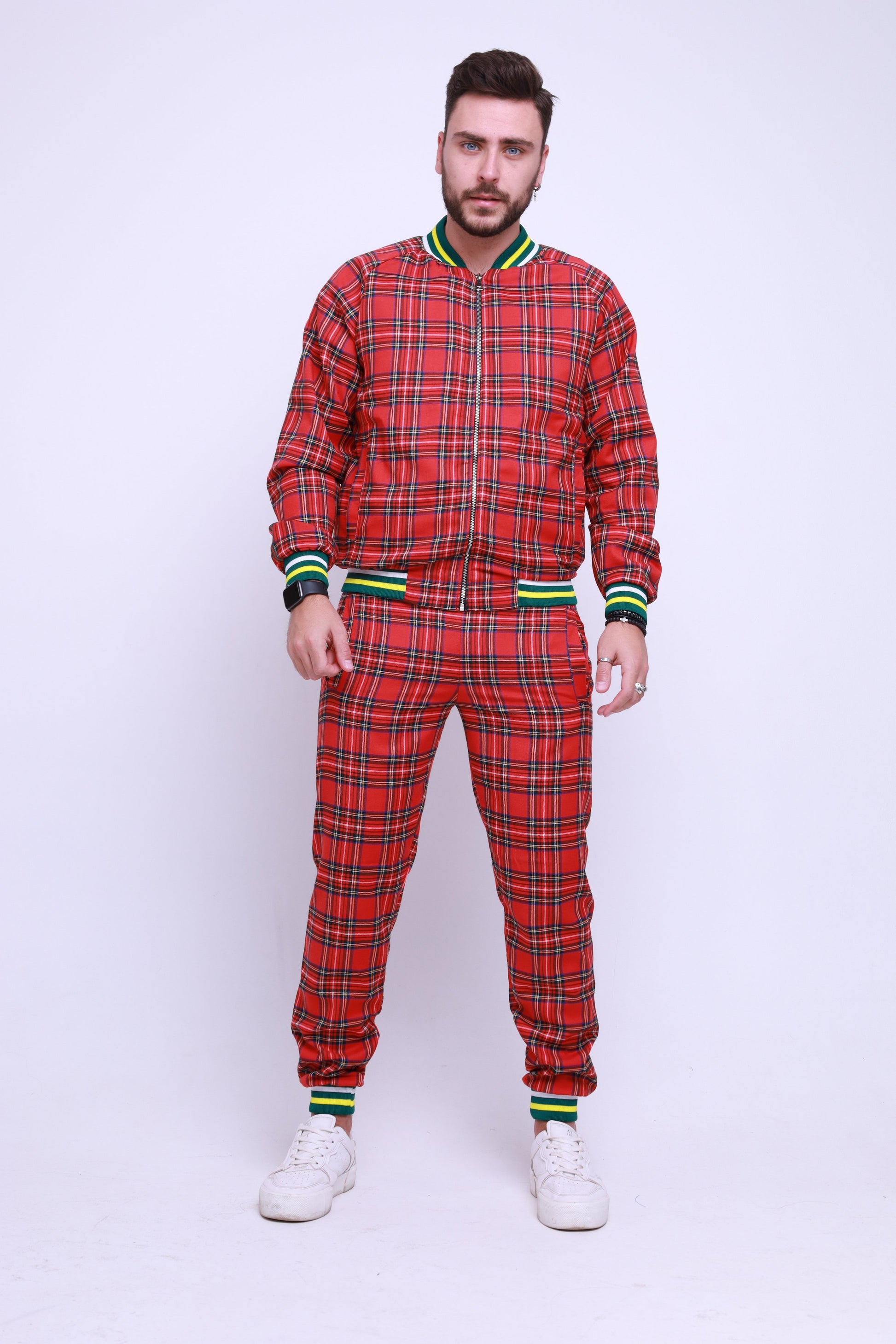 The Gentlemen Tracksuits Plaid Tracksuit Set in Red
