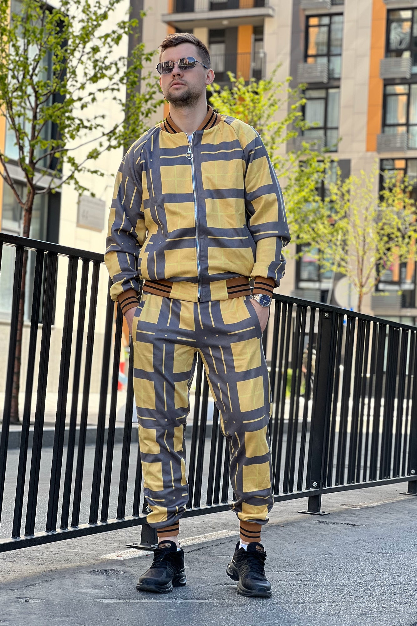 Premium Yellow-Black Tartan Men's Tracksuit